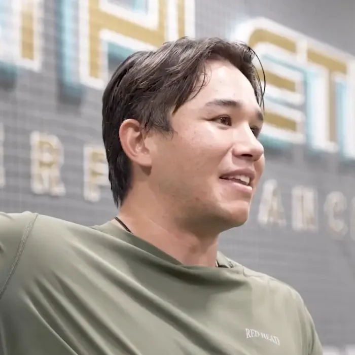 “That’s the big thing — no stone unturned. When we try something, it may not work, but at least we’re trying it. That’s the idea. I show up to pro day throwing 89-91… get to Tread a week early, you guys say, ‘Try a sinker’ — I throw it and it disappears at 94.5. Broke the catcher’s thumb. I had no idea I had that in me.”