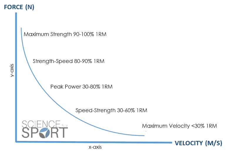 That is to say – athletes should focus on what they suck at relative to everything else. Which for me, was everything at the bottom right of the force-velocity curve below.